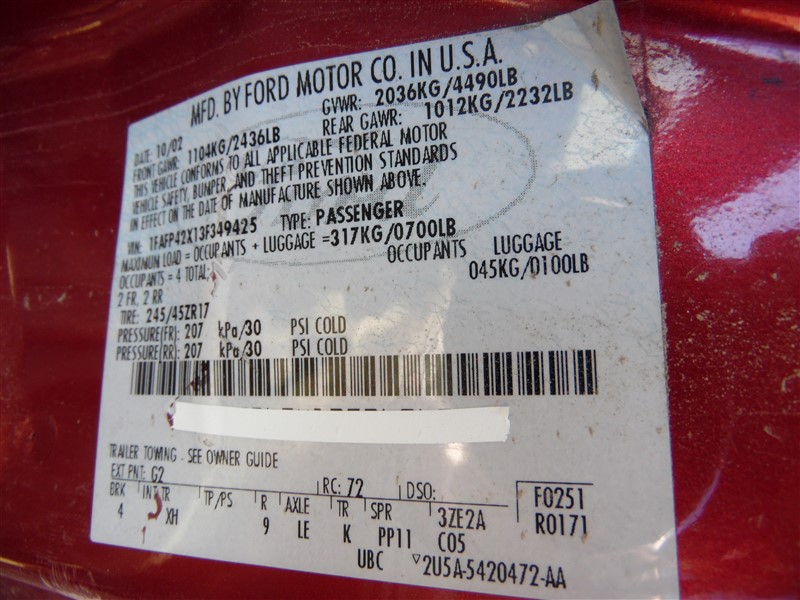 2003 FORD MUSTANG COUPE GT RED 4.6 MT 2003 FORD MUSTANG COUPE GT RED 4.6 MT